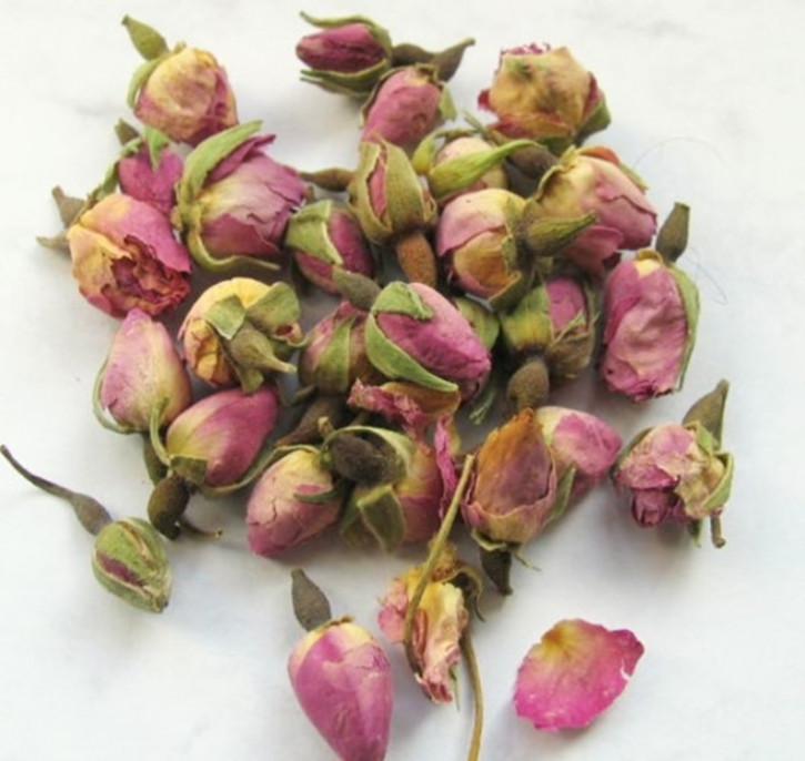 Getrocknete ganze Rosenknospen, rosa, mit wunderbarem Duft